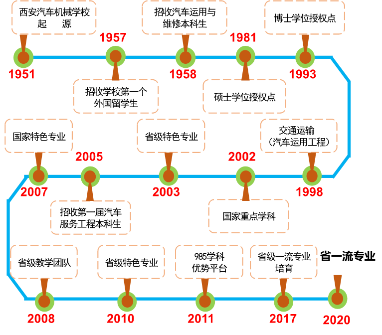 本专业拥有近70年的悠久办学历史,是国内最早开设汽车服务工程专业的高校之一,拥有完整的本、硕、博学科专业体系。已建成省级教学团队、陕西省名牌专业、陕西省特色专业、陕西省“一流专业”,已经成为学科优势明显、行业特色鲜明的人才培养基地。