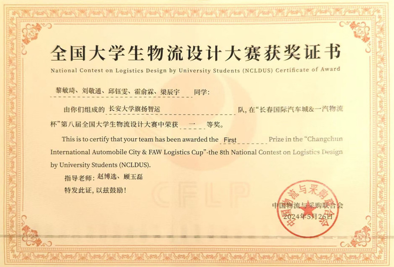 太阳城赌场 物流工程本科生先后参加了2007年“安得杯”第一届全国大学生物流设计大赛(全国总决赛优胜奖)、2009年“邯运杯”第二届全国大学生物流设计大赛(全国总决赛一等奖)、2011年“顺丰杯”第三届全国大学生物流设计大赛(全国总决赛二等奖),2013年“安吉杯”第四届全国大学生物流设计大赛(获全国总决赛一等奖),2015年“郑明杯”第五届全国大学生物流设计大赛(获全国总决赛二等奖),2018年“马钢杯”第六届全国大学生物流设计大赛(获全国总决赛一等奖以及组织奖),2024年“长春国际汽车城&一汽物流杯”第八届全国大学生物流设计大赛(获全国总决赛一等奖)。