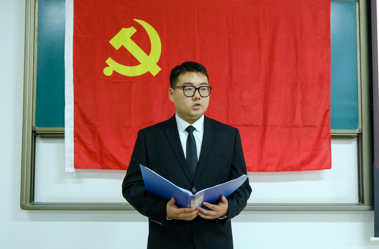 本期培训班学员代表宋德辰在会上发言。他在发言中分享了党课学习过程中的感悟与收获,表示在今后的学习生活中,将严格地要求自己,勤学力行,明辨笃实,争取早日成为一名正式党员。