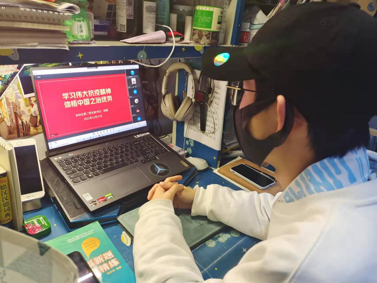 党员所至即有行动,“战斗力”在党旗下凝聚。线下投入抗疫志愿服务一线同时,各支部广泛动员、积极开展线上抗疫主题党日活动。活动内容围绕学习习近平总书记在全国抗击新冠肺炎疫情表彰大会上的重要讲话、领会伟大抗疫精神内涵、体悟中国之治制度优势等内容展开,引导学生党员投身抗疫一线、服务学校抗疫大局、交出满意抗疫答卷。