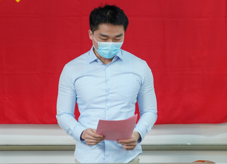 学员代表张轩诺发言。她分别从“强化理论武装,筑牢思想之基”、“厚植家国情怀,把稳思想之舵”、“践行初心使命,补足精神之钙”三个方面作了具体表态,并表示将严格按照共产党员标准要求自己,争取早日成为一名真正的共产党员。