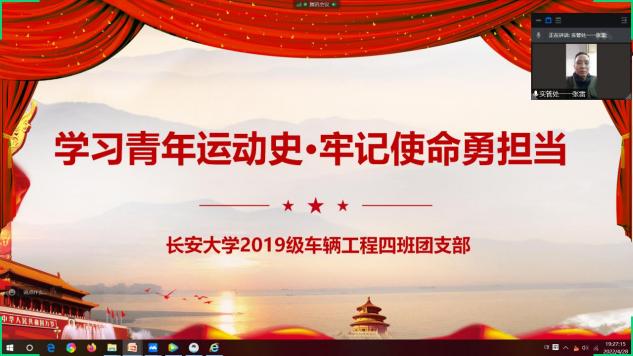 4月28日晚,澳门太阳城赌场 2019级车辆工程四班团支部“学习青年运动史•牢记使命勇向前”主题团日活动通过腾讯会议顺利开展。本次活动主要围绕《团的光辉历史》视频团课,结合《新时代的中国青年》,让团员们充分体悟团的精神,找准自身定位,明确未来的奋斗目标。本次活动由支部书记刘宸赫主持,思政班主任张雷老师及2019级车辆四班团支部全体成员参与。
