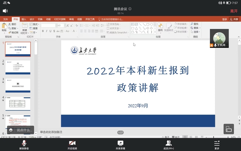 9月6日晚,太阳城赌场 2022级本科生辅导员王凯尧、王文杰于线上召开新生报到政策解读会暨安全教育活动,2022级全体本科新生参会,会议由王凯尧主持。
