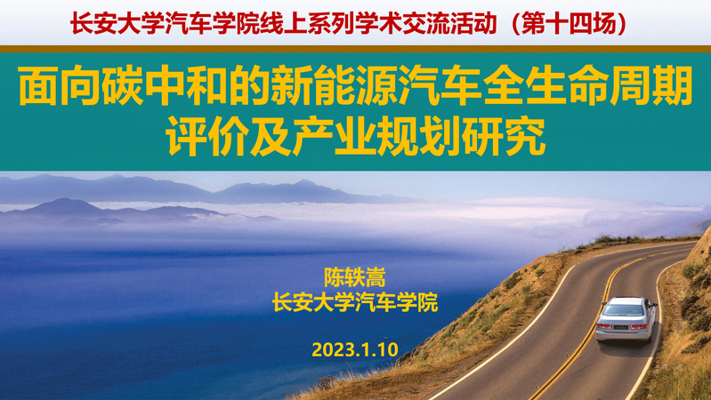 2023年1月10日,太阳城赌场 举办的线上系列学术活动,学术报告十四“面向碳中和的新能源汽车全生命周期评价及产业规划研究”顺利举行。本次报告由陈轶嵩教授分享关于新能源汽车全生命周期评价和汽车产业战略规划方面的研究成果。