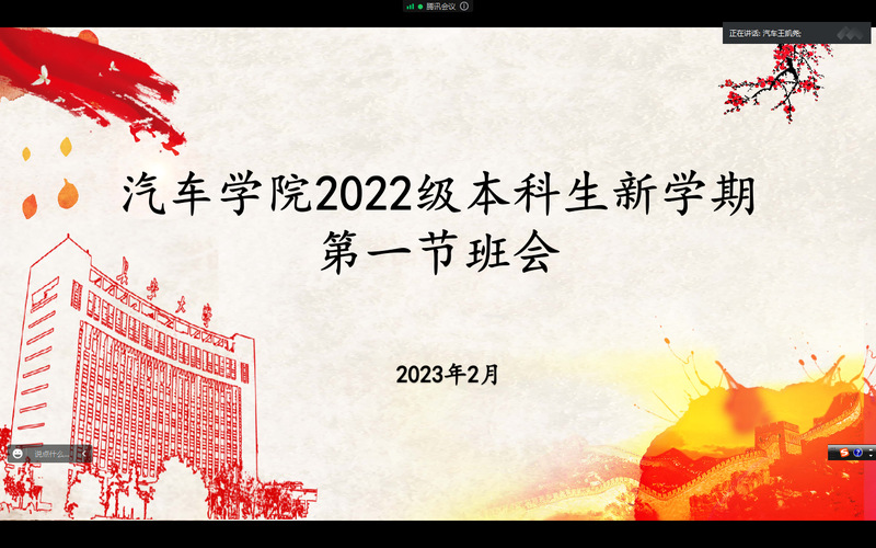 新学期,新征程。为切实做好本学期相关学生工作,保障学生在学期初能进一步明确目标,调整心态,逐梦扬帆再起航。2月16日下午,澳门太阳城赌场 2022级通过线上组织开展新学期第一节班会,2022级辅导员王凯尧、王文杰及全体2022级学生一同参会。