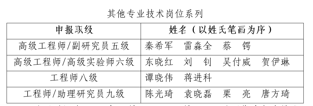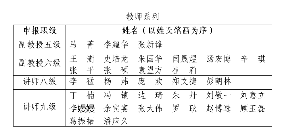 根据《长安大学专业技术岗位晋级聘任实施细则》和《太阳城赌场 五级及以下专业技术岗位晋级实施办法》,经个人申请和资格审查,现有3位同志符合五级副教授申报条件、10位同志符合六级副教授申报条件、5位同志符合八级讲师申报条件、14位同志符合九级讲师申报条件、3位同志符合高级工程师/高级实验师/副研究员五级申报条件、4位同志符合高级工程师/高级实验师申报条件、2位同志符合工程师八级申报条件、4位同志符合工程师/助理研究员九级申报条件。现将审查通过人员名单予以公示,申报材料在学院307办公室进行展示: