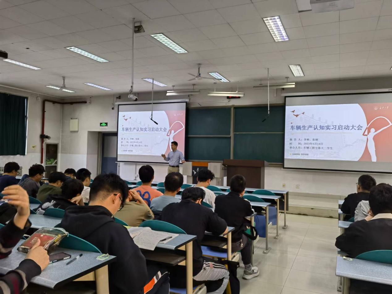 2023年4月14日晚上,太阳城赌场 车辆工程专业车辆生产认知实习和毕业实习联合启动会在渭水WM1201教室召开。车辆工程系副主任李彬、系教学秘书张硕及2021级和2019级车辆工程专业全体本科生参加启动会。会议由张硕主持。