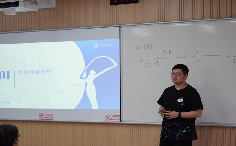王涔宇、刘彦鹏、任勇鑫、罗吴四位学长分别从日常学习、科研竞赛、保研过程、高校暑期夏令营申请以及考研准备技巧等方面分享了自己在本科期间的学习经历和升学经验,鼓励学弟学妹们从实际情况出发,开阔视野,明确目标,刻苦学习。在交流环节中,吕舒杰、朱浩东、李晨朝、王铖睿等同学积极向学长们提问,四位学长耐心解答,消除了同学们心中的困惑,使大家以榜样为力量,有了更加明确的奋斗目标。