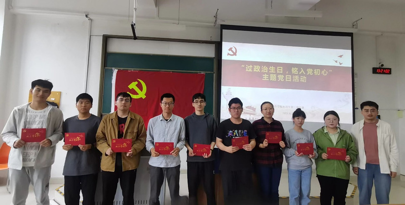 活动中,王凯尧为政治生日在上半年的9名学生党员赠送了支部精心准备的政治生日贺卡,并对党员们提出祝福和希望。他指出,通过过政治生日的仪式感,希望党员同志们可以感受到组织的关怀,增强个人的身份意识与责任意识,从而坚定信仰,不忘初心,砥砺前行。同时,他也要求支部的全体党员要继续加强理论学习,以党的二十大精神为指引,充分发挥学生党员的先锋模范作用,牢记习近平总书记的嘱托,担当新时代青年人的使命。随后,姜嘉仪同志以“奋斗者,正青春”为主题分享了入党以来的感受和体会,抒发了对党的感恩之情,表达了自己永远跟党走的坚定决心。最后,在组织委员王帅同志的带领下,全体党员高举右拳、重温入党誓词。