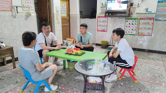 7月12日,澳门太阳城赌场 团委书记许超然、团委副书记张强前往广西壮族自治区桂林市灌阳县文市镇走访2021级本科生唐超杰家庭,在和学生及其家人座谈过程中,许超然和张强首先与学生家长进行了深入沟通,了解当地的基本设施条件以及建设情况,向学生家长及亲属表示亲切问候和关心。随后许超然向家长介绍了学生在校的基本学习情况和思想动态等相关情况,张强表示学院会继续做好学生思想教育工作和引领。除此之外,两位老师还就家长对于学生的就业、考研等关心的问题进行解答,了解家长对于学生教育上的迫切需求,形成家校育人合力,促进学生全面成长成才。