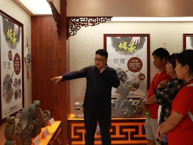 7月15日,实践队前往固原市隆德县凤林乡于河村魏氏砖雕展示馆参观非物质文化遗产砖雕。在参观的时候,魏亚龙老师为队员们讲解不同种类的砖雕的差异。不同的工艺顺序和不同的泥土制作出的砖雕在颜色、质地、触感等方面有所不同。比如,软雕和硬雕就是因为不同的工艺顺序导致的。展馆中的工艺品琳琅满目。