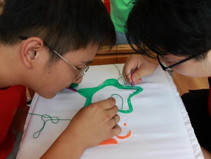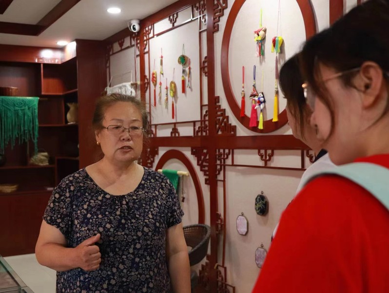 7月12日,实践队一行前往非物质文化遗产传承人赵桂琴的刺绣工坊,同为自治区级非物质文化遗产传承人的王倩为团队成员介绍了工坊的代表性刺绣作品。通过参观工坊,团队成员深刻体会到赵桂琴老师与王倩老师多年来对刺绣技艺的专注与执着。在非物质文化遗产传承与推广期间,赵桂琴老师成立刺绣工作室,旨在培训贫困地区的妇女以及残障人士,帮助他们掌握刺绣技艺,获取一定的经济收入,缓解家庭经济困难,助力乡村振兴;同时又将刺绣技艺宣传推广至国内外地区,让更多的人了解中国非物质文化遗产,推广中华优秀传统文化。随后实践队成员体验了刺绣技艺。