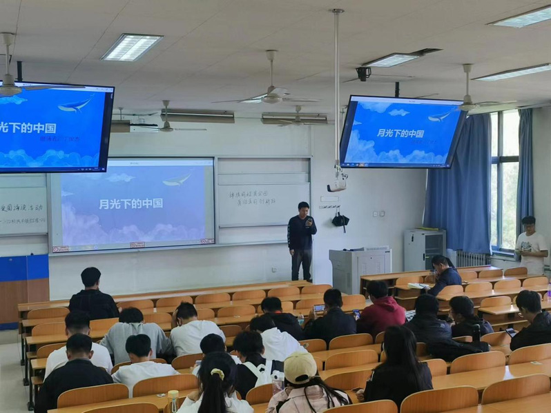 活动开始,胡佳鹏、丁俊杰、杨鑫坤、沈佳梁、孙钰昊五位同学依此为大家朗诵了《祖国啊,我亲爱的祖国》《月光下的中国》等五篇爱国主题诗歌,并向同学们讲述了对诗歌的理解与感悟。五篇诗歌描写角度各不相同,在同学们铿锵有力的朗诵中,真切的表现出他们对祖国的热爱,将这种情感也传达给了每一位同学。