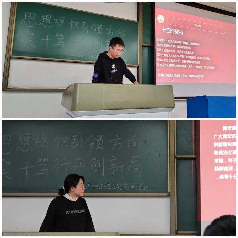 最后,车辆工程四班团支书闫田壮带领全体团员重温入团誓词,希望全体团员不忘初心、牢记使命,发挥团员模范引领作用。旗帜指引方向,思想凝聚力量。广大团员青年唯有在思想旗帜的指引下,才能踔厉奋发、笃行不怠,投身于社会主义建设的火热实践中,在党和人民最需要的地方绽放最绚丽的青春之花。