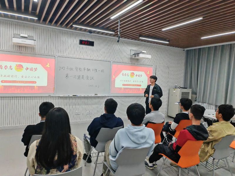 为庆祝中华人民共和国成立74周年,增强青年学生爱国意识,弘扬新时代爱国主义精神,澳门太阳城赌场 2023级智能车辆工程1班团支部于10月5日下午在渭水校区WX3302教室开展了以“青年砥砺前行,爱国之心永恒”为主题的团日活动,智能车辆工程全体在校学生参加本次活动,活动由团支部书记高世杰和班长、团支部副书记曹纲元主持。