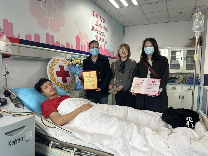 同日上午,校团委副书记丁芝娟、院党委副书记崔莉一行前往唐都医院看望慰问了王金权,对他乐于助人、无私奉献的高尚品质和爱心善举给予了高度赞扬和充分肯定,并代表学校、学院送上荣誉证书及慰问品。陕西省红十字协会和唐都医院相关负责人向王金权同学颁发了“中国造血干细胞资料库陕西分库爱心使者”和“捐献造血干细胞”荣誉证书。