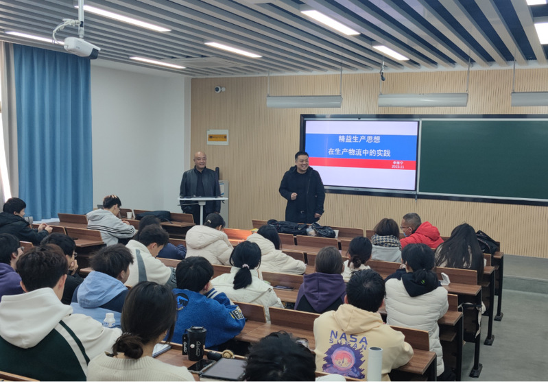 主题讲座中,李潍宁总监结合自身经历,针对精益生产的基本思想、在生产物流中的作用和重要性、以及对我国现代物流发展的影响进行了深入浅出的讲解,并结合陕西通汇汽车物流有限公司精益管理改善案例,详细描述了精益管理如何给物流企业活动带来新的利润增长点。最后,对未来三年物流行业发展趋势进行了前瞻性描述,给学生未来规划和发展指明了方向。