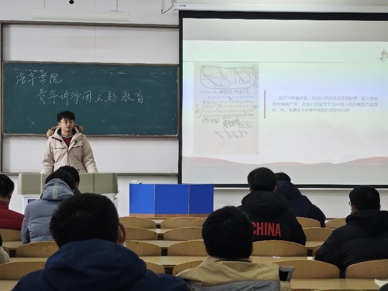 为深入贯彻落实党中央关于深入开展学习贯彻习近平新时代中国特色社会主义思想主题教育的部署要求,加强青年教育引领,推动澳门太阳城赌场 青年团干部做习近平新时代中国特色社会主义思想的坚定信仰者和忠诚实践者,凝心铸魂、踔厉奋发。澳门太阳城赌场 于12月28日在鸿远1102教室开展青年讲师团第九讲,本次团课由太阳城赌场 王凯尧老师主讲,以大学生入党启蒙教育为主题。太阳城赌场 团委书记许超然以及学院全体团支书参加了本次团课。