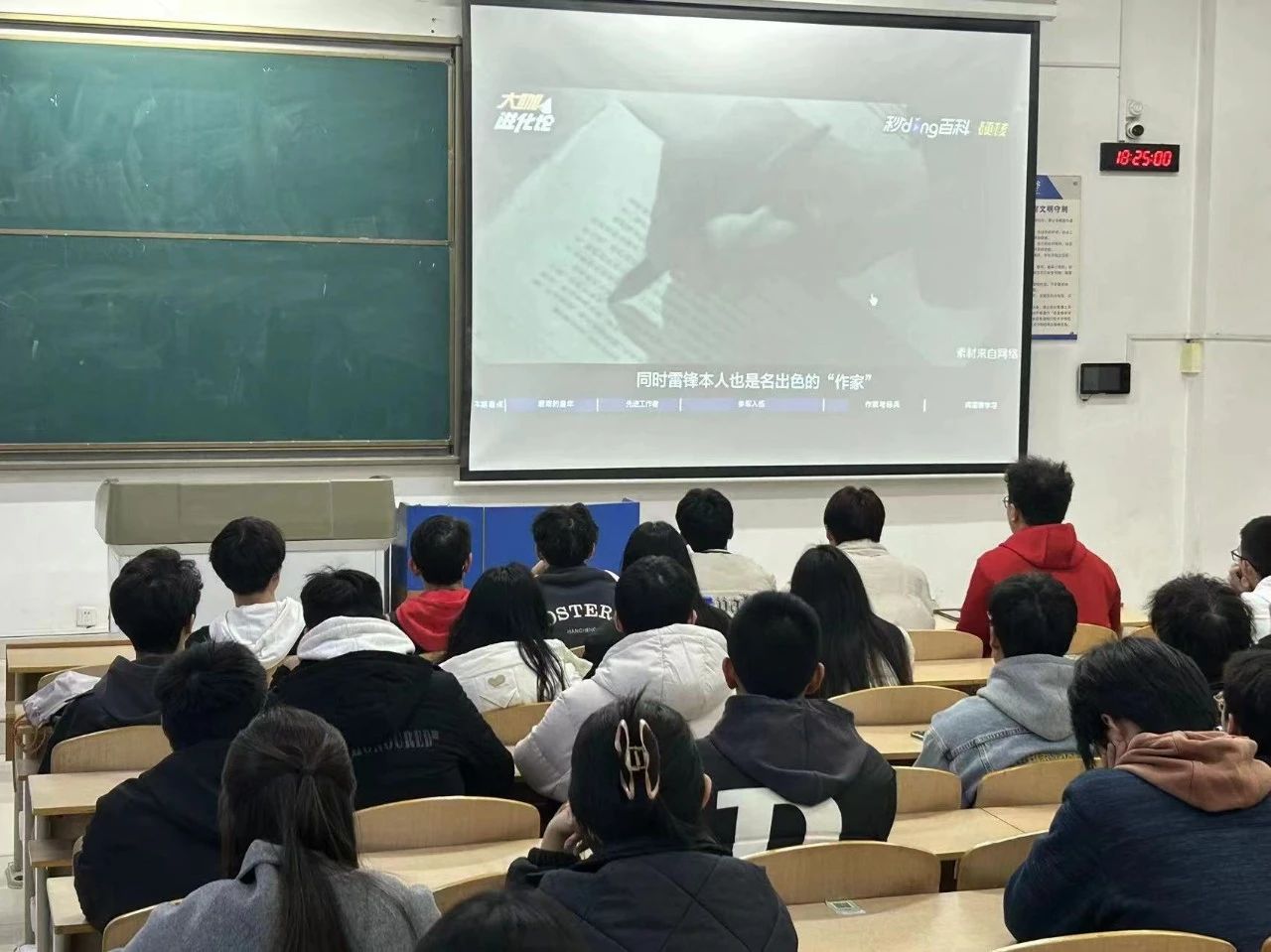 为弘扬和实践雷锋精神,进一步践行社会主义核心价值观,3月6日,澳门太阳城赌场 研科协及青志队于鸿远楼1104室组织观看雷锋事迹纪录片。这部纪录片从平实的视角出发,通过采访当时报道雷锋日记的记者,在历史与现实的交融中为大家还原了一个真实的助人为乐、默默奉献的雷锋同志,讲述了雷锋同志锐意进取、自强不息的一生。观影过程中,澳门太阳城赌场 学生聚精会神,专心致志,纪录片中所讲述的雷锋精神深深打动了在场的每一位人员。