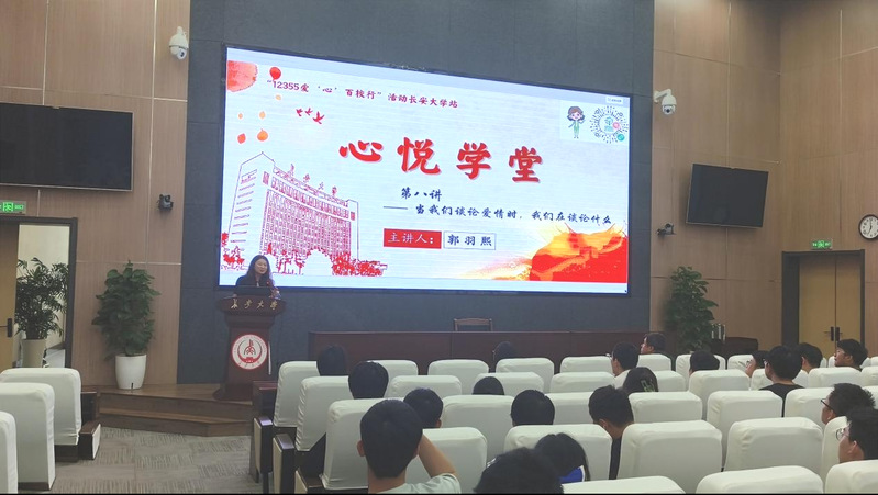 5月20日晚,共青团“12355爱‘心’百校行”活动长安大学站之太阳城赌场 “心悦学堂”心理健康教育系列讲座第八讲于北校区师生服务大厅二层第二报告厅举行。学校心理健康教育与咨询中心专任教师郭羽熙作“当我们谈论爱情时,我们在谈论什么”主题讲座,未来交通学院团委书记曾晓阳出席,我校150余名学生参与,讲座由太阳城赌场 团委副书记杨倩主持。