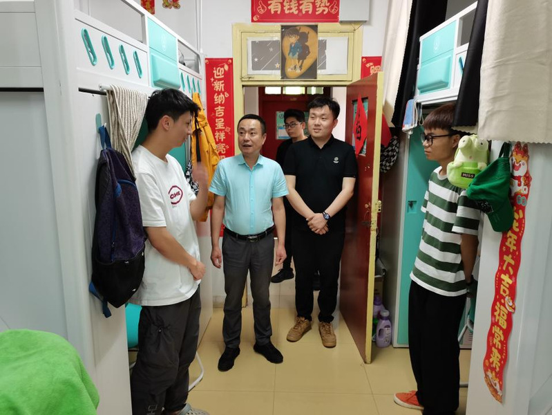 走访过程中,各位领导老师与同学们亲切交谈,共同探讨。在低年级学生宿舍,详细询问了大家近期的课程与考试情况,勉励同学们要珍惜良好的宿舍环境与同窗情谊,认真学习专业基础知识,克服慵懒麻痹思想,以青春之姿、奋斗之态投入到日常的学习生活中去。在高年级及毕业年级学生宿舍,逐一了解同学们当前的学业完成情况与未来的发展规划,认真倾听大家对于学校、学院发展的意见需求,鼓励同学们要以乐观积极的心态面对学习生活中的困难,学院亦将矢志不渝地为同学们的成长发展排忧解难、保驾护航。