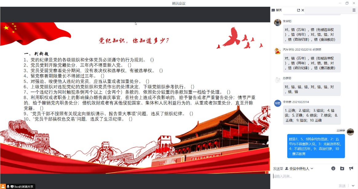 为进一步加深党员对《中国共产党纪律处分条例》的理解,活动采用知识问答的形式开展党纪学习教育,帮助党员了解处分类型和方式,明确党员的底线和红线。