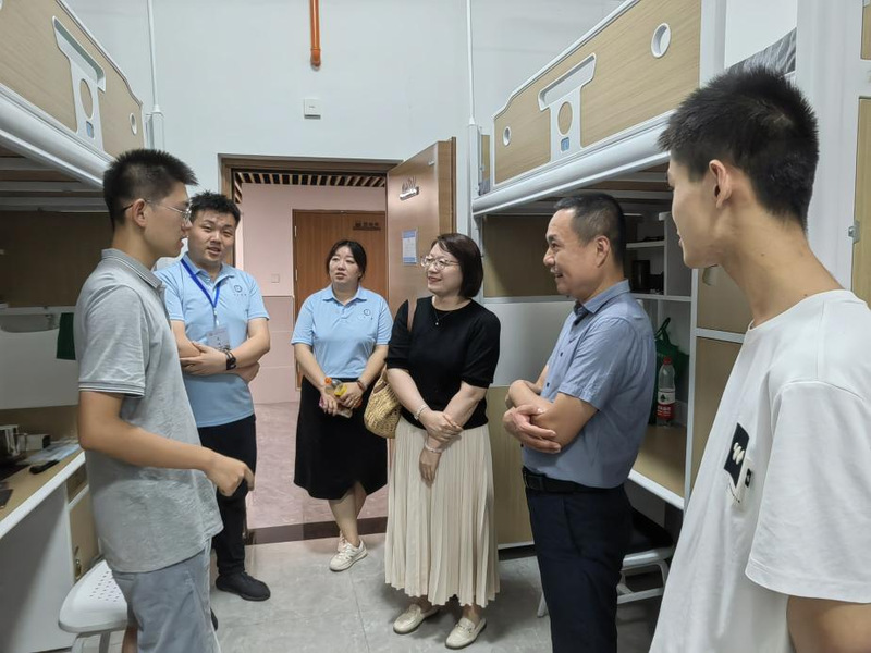 在金秋送爽、丹桂飘香的季节里,澳门太阳城赌场 迎来了又一批朝气蓬勃的新同学。为更好地了解新生的入住情况,传递学院的关怀与温暖,8月28日晚,学院党委书记林贵宝、党委副书记崔莉、学生工作办公室主任郑文捷及新生辅导员一行深入新生宿舍,与新生面对面交流,共话大学生活新篇章。