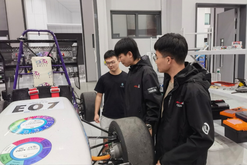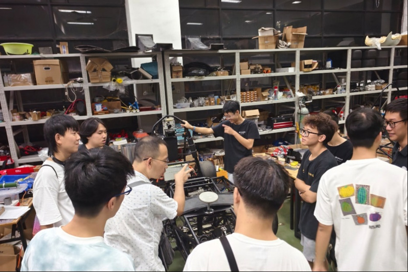 在深圳职业技术学院魅影方程式赛车队,队员分组别对零件,加工方式等进行了深入的交流,分享各自的经验和技术,在思维的碰撞中闪耀着智慧的火花。在广东工业大学FSAE车队工作室中,带队老师王飞主导交流。双方车队队员围绕组委会新增要求,研发进度与传感器选型,人员分工以及去年赛场过检情况等方面展开了讨论,也分享了彼此的经验和心得,众人的讨论热情高涨。
