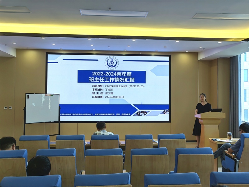 9月6日下午,澳门太阳城赌场 于学院310会议室举行2023-2024学年本科生班主任考核暨优秀班主任答辩会。院党委书记林贵宝,院长赵轩,院党委副书记、副院长周姗姗,副院长牛世峰、陈轶嵩,以及各系室主任、教师代表和学生代表一同参会。会议由学生工作办公室主任郑文捷主持。