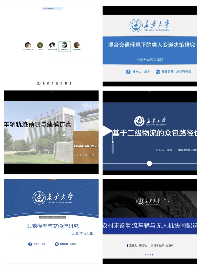 其次,康宇作了有关《混合交通环境下的类人变道决策研究》的汇报,提出了一种多障碍物场景下的类人变道决策策略,考虑驾驶员忍耐力、驾驶员速度要求等对换道决策的影响;田浩就《车辆轨迹预测与建模仿真》展开分享,主要包括深度学习算法实现车辆轨迹预测、仿真控制模型、搭建仿真场景对预测结果进行验证三个方面;侯雪简述了《基于二级物流的众包路径优化》研究内容,主要从两级物流、多目标函数和路径优化三个方面展开;令潇主要分享了有关《跟驰模型与交通流研究》的内容,主要是基于元胞自动机Nasch规则,引入安全间距和速度,分析不同比例的车辆渗透率条件下车辆对道路通行能力、行驶速度、行车间距、交通拥堵等运行特性的影响;陶旭秋汇报了《农村末端物流车辆与无人机协同配送》学习内容,主要从农村末端配送特点和车辆与无人机协同配送特点两个角度思考问题,提出模型与优化思路,并总结了目前待解决问题。