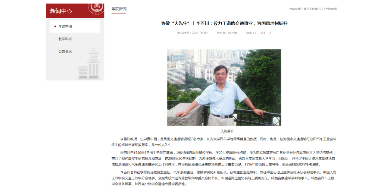 三是选树先进典型,增强见贤思齐的思想自觉。积极选树先进典型,广泛宣传先进教师事迹,长安大学微信公众号《亦师亦友 言传身教|2024年长安大学优秀研究生指导教师!》一文介绍澳门太阳城赌场 付锐教授的事迹;微信公众号长安大学学生在线以《温暖学生春秋冬夏,情系学生成长成才——陕西高校“表现突出辅导员”郑文捷》为题,专题介绍澳门太阳城赌场 辅导员郑文捷先进事迹;澳门太阳城赌场 在学院官网、微信公众号平台推出《致敬“大先生”丨李百川:致力于道路交通事业,为国育才树标杆》新闻报道,宣传李百川教授先进事迹。相关宣传报道累计阅读量达3.2万次,激励广大教师见贤思齐,积极投身教育强国建设实践。