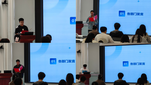 实践部部长王禹皓、策划部部长王义甫、办公室部长翟家桢、网宣部部长陈狄作为各部门代表,分别对过去一学年的工作内容做出总结,对新学年的工作计划做出安排,强调了团队共同努力的重要性,表达了对新成员开拓创新与积极参与工作的期许,共同书写彩虹心理协会的新篇章。新部员代表杨秋爽同学以充满激情的发言,表达了自己加入心协的憧憬,并承诺将以饱满的热情和坚定的信念,投入到组织的各项工作中,为彩虹心理协会贡献自己的力量。