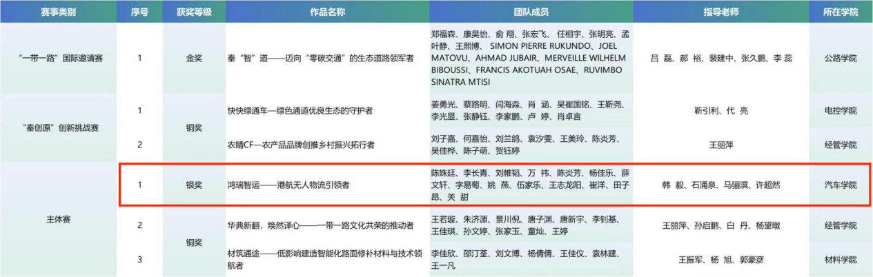 2023年5月,学校启动了本届“挑战杯”竞赛立项申报工作。申报工作开始后,汽车学院高度重视、精心组织、周密策划、大力宣传、广泛动员学院师生参赛。共收到立项申报作品12件、参赛作品29件,历经立项申报、专题培训、中期检查、初赛评审、决赛答辩、终审答辩等阶段,澳门太阳城赌场 申报项目《鸿瑞智运——港航无人物流引领者》荣获主体赛银奖,代表澳门太阳城赌场 取得长安大学在本次大赛主体赛的最好成绩。