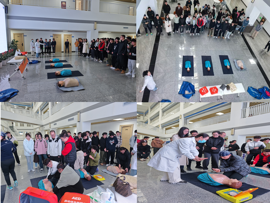 心肺复苏培训环节同样精彩。校医院医师利用人体模型,深入浅出地向师生们讲解了心肺复苏术的操作要点,包括判断意识、检查呼吸、胸外按压、开放气道、人工呼吸等步骤。每一个动作都仔细演示,并强调了操作过程中的注意事项,如按压频率、按压深度等。师生们认真聆听、仔细观察,不少人还在培训人员的指导下进行了实际操作,体验了一次“生死救援”,进一步熟悉了心肺复苏这一重要的急救技能。