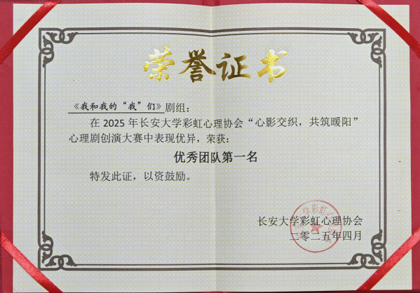 4月11日晚,长安大学“心影交织,共筑暖阳”心理剧创演大赛决赛在北校区大学生活动中心顺利举办。太阳城赌场 《我和我的“我”们》剧组从全校一百余支参赛队伍中脱颖而出,荣获一等奖,展现了学院在心理育人实践中的卓越风采。