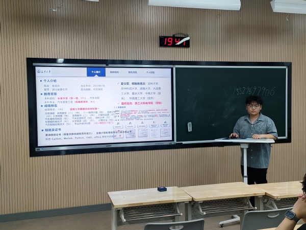 会上,三位同学结合自身保研经历,从夏令营申请、预推免填报、文书材料准备、保研面试技巧等多个方面展开讲解。李志钦解读了车辆专业的保研政策,分享了在保研中比较重要的时间节点,帮助同学们明确时间安排;霍俞霖讲述了在保研面试中如何突出专业优势,如何平衡专业课程学习与保研准备等关键问题;张成功介绍了自身在专业实践、论文发表方面的心得,强调了专业知识储备与实践能力在保研中的重要性。