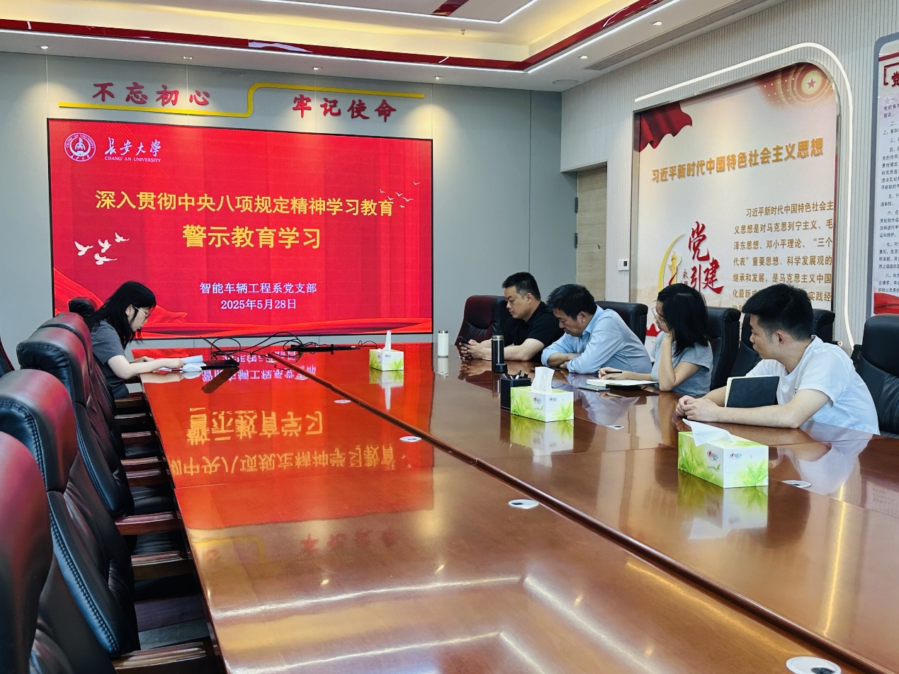 5月28日下午,智能车辆工程系党支部在太阳城赌场 219会议室警示教育会。党支部全体党员参加会议,党支部书记张硕同志主持会议。