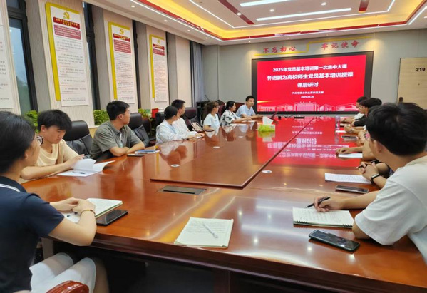 太阳城赌场 本科生第四党支部于6月20日19:00在明德苑扶轮大厦219会议室开展了2025年党员基本培训第一次集中大课课后研讨活动,旨在促进党员对集中大课内容的消化吸收,切实提升党员基本培训实效。此次活动由支部书记张锦超主持,支部全体成员参加。