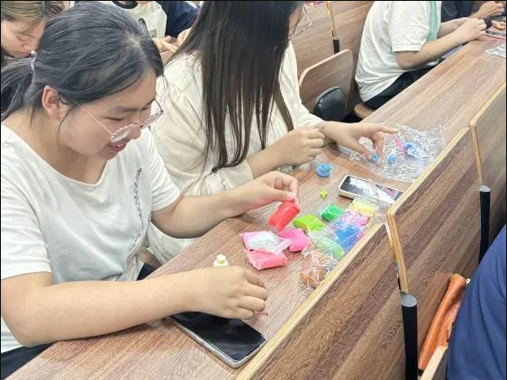 本次活动巧妙融合了心理疏导与艺术创作,引导同学们在轻松愉快的氛围中释放情绪、表达自我。活动现场气氛热烈,同学们兴致高涨,全心投入于泥塑制作中。