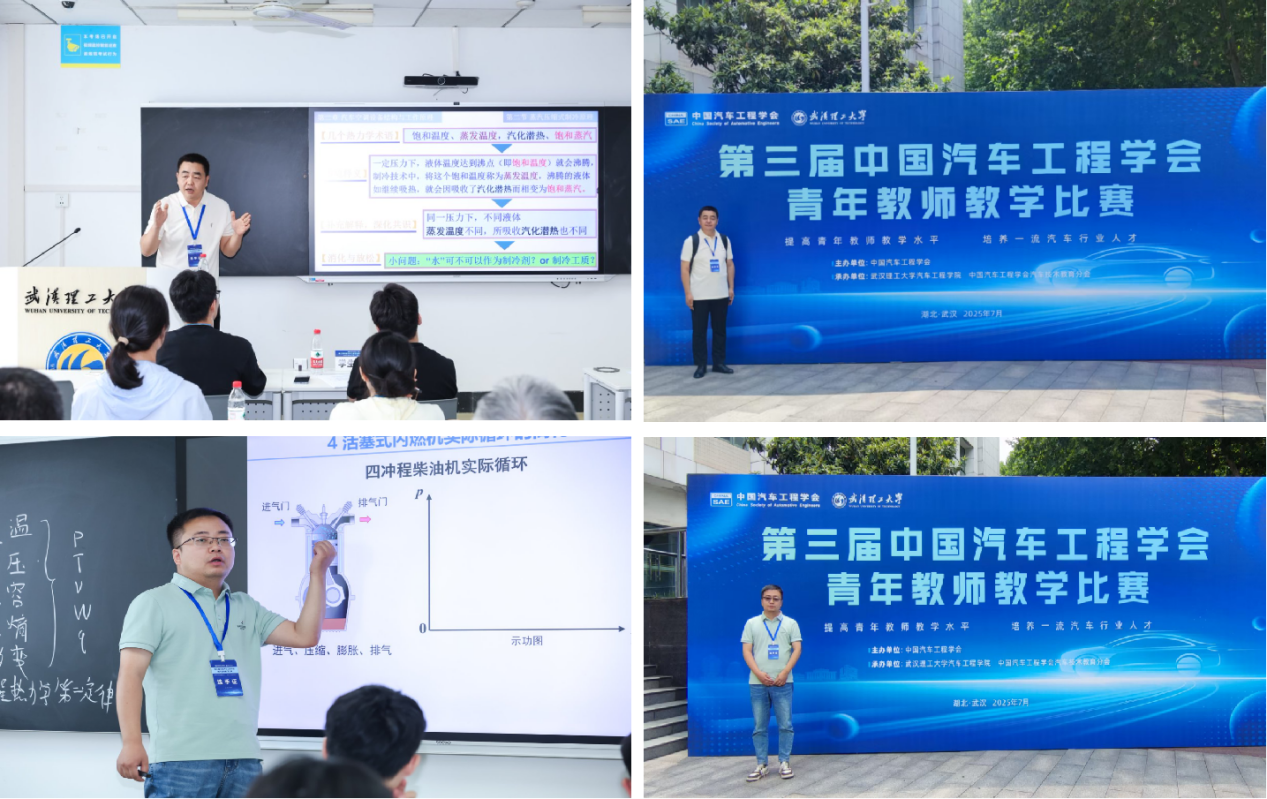 7月12至13日,第三届中国汽车工程学会青年教师教学比赛在武汉成功举办。澳门太阳城赌场 教师李兆凯、屈靖国在此次比赛中荣获三等奖。本届比赛参赛选手来自吉林大学、山东大学、北京科技大学、长安大学、武汉理工大学、江苏大学等26所高校。比赛采用双组并行机制,选手从3个预设教学节段中随机抽选1项,依次展开20分钟教学展示并完成20分钟即时反思撰写。参赛者通过精准的学术语言、动态教态演绎及创新性教学策略,系统呈现其教学理念与个性化育人模式。