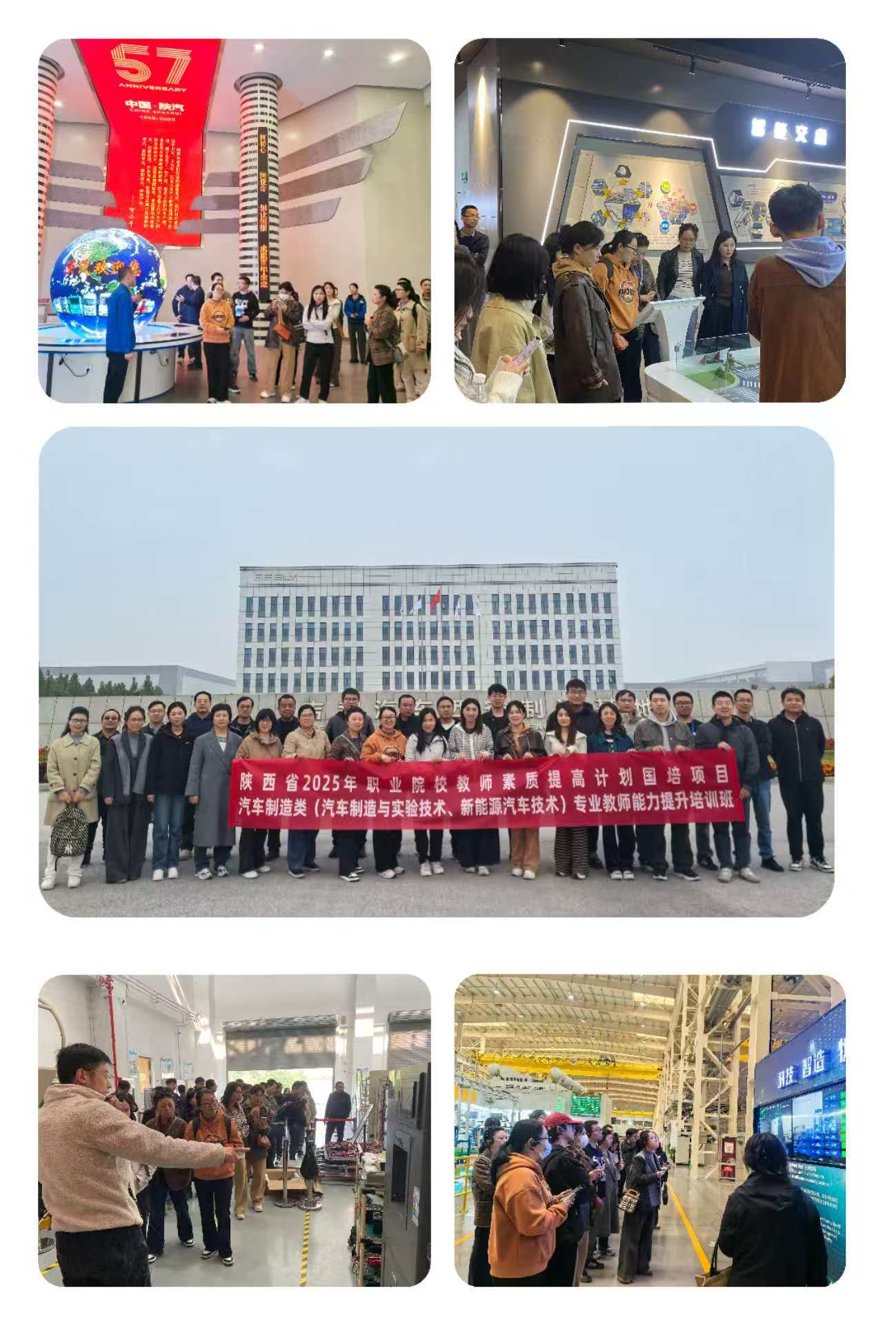 培训期间,为进一步加强实践教学转化及企业需求交流,组织学员先后赴西安吉利汽车产业基地、陕汽集团深入生产一线了解新能源汽车与智能网联汽车的生产工艺与质量管理等企业需求。学员深入长安大学公路交通博物馆、汽车试验场及陕西省概念验证中心,了解前沿科研与实验技术。